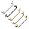 Abi šie ķermeņa pīrsingi ir iespējami ar attēlā redzamo rotaslietu. Jūs raugāties uz 90 grādu leņķa stienīti, izgatavotu no ķirurģiskā tērauda, katrā galā dekorētu ar plakaniem diskiem jeb uzgaļiem. Jūs to varat iegādāties dažādās krāsās, piemēram, zelta vai daudzkrāsainu. Tas ir atkarīgs no jums!