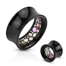 Piedāvājam Tev iegādāties šo neatvairāmo un viegli ievietojamo tuneli. Tas ir izgatavots no melna akrila, kurš kombinācijā ar nevienādajām perlamutra krāsas daļiņām piešķir rotaslietai kosmisku skaistumu. Perlamutrs ir maģisks materiāls, kura maigie krāsu toņi un tam raksturīgais spīdums gaismas staros rada debešķīgu krāsu spēli.