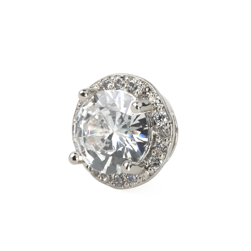 Šīs rotaslietas centrā atrodas liels slīpēts akmens, kas burvīgi atstaro katru uz tā krītošo gaismas stariņu. Lielo centrālo akmeni ieskauj mazu cirkonija kristālu aplis, kas pastiprina šī dermal uzgaļa skaistumu.