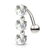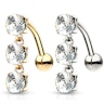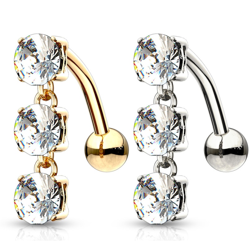 Apgriezts nabas pīrsings no 14 karātu zelta kulonu no trim kristāliem