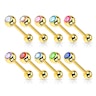 Skaists mēles pīrsinga stienītis no 14 karātu zelta ar kristālu, kurš ir pieejams dažādās krāsās.
