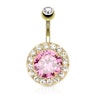 Nosaukums: Nabas pīrsings apzeltīts un rotāts ar lielu rozā kristālu