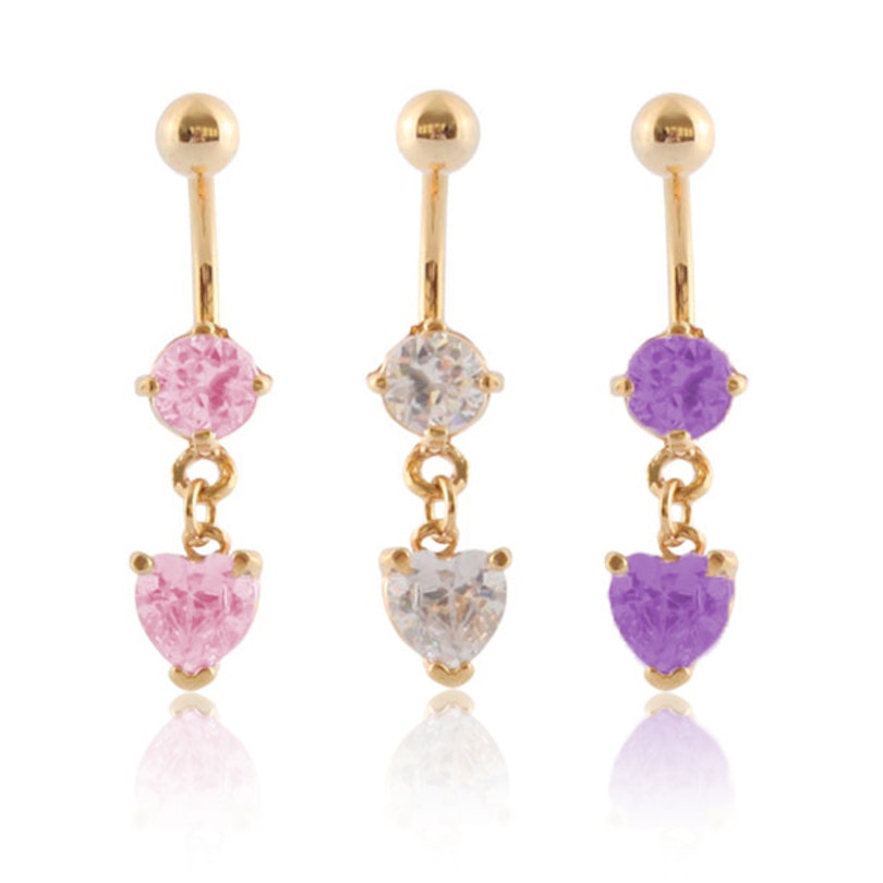Nosaukums: Nabas pīrsings apzeltīts ar sirds formas akmentiņu piekariņu