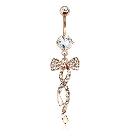 Nosaukums: Nabas pīrsings apzeltīts ar sarkano zeltu rotāts ar bantīti un kristāliem