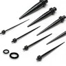 Šie strečeri ir izgatavoti no ķirurģiskā tērauda ar melnu titāna pārklājumu. Tie ir ideāli darbarīki jūsu tuneļiem, it īpaši, ja nevēlaties iegādāties vēl papildus modeļus. Strečeris komplektā nāk ar diviem o-riņkiem, visos izmēros. Tie nostiprinās strečeri vietā un nodrošinās, ka tas neizslīd ārā no jūsu pīrsinga.