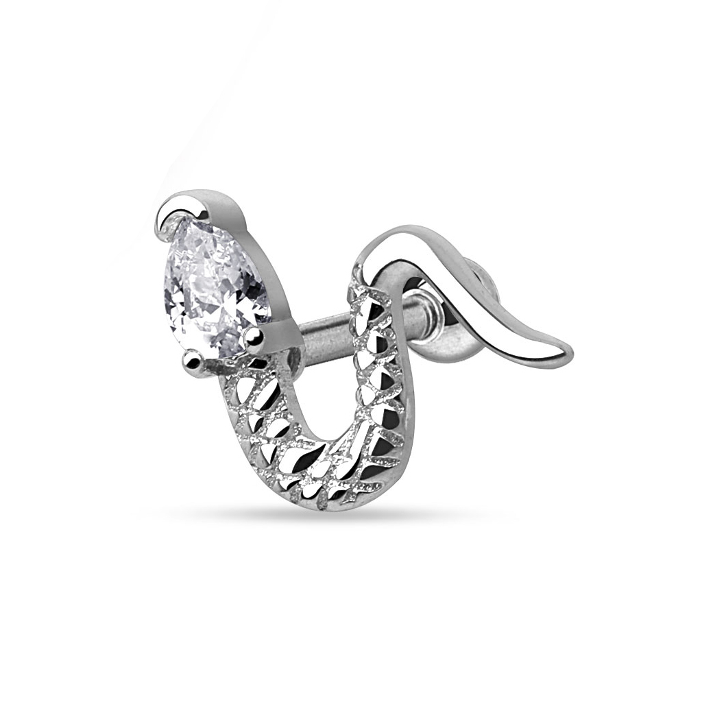 Piemīlīgu un sievišķīgu rotaslietu ir daudz, tomēr dažreiz ir grūti atrast kaut ko patiesi oriģinālu un izteiksmīgu. Attēlā redzamais auskars jeb auss pīrsinga stienītis to piedāvā; čūskas dizaina radošais atveidojums rada neatkārtojamu rezultātu, padarot to par unikālu rotu, kuru Tu nedrīksti palaist garām!