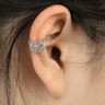 Auss kaffs ir izgatavots no misiņa un pārklāts ar rodiju, kas piešķir tam attēlā redzamo sudraba krāsas apdari. Saspiežot klipša galus, to var viegli pielāgot ausij, to nofiksējot savā vietā ar rotas galos esošajām lodītēm. Uz katra burvīgā taurenīša spārna rotājas trīs nelieli kristāliņi.
