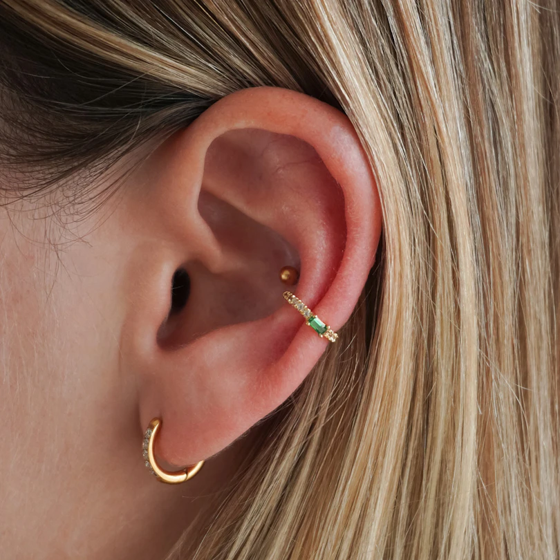 Mazs zaļš akcents var pilnībā mainīt Tava stila noskaņu. Šis auss kaffs ir izgreznots ar vienu zaļu akmentiņu, kas piešķir rotai krāšņumu bez pārspīlējuma, ļaujot Tev viegli papildināt savu tēlu ar ko neierastu.