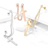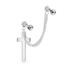 Nosaukums: Auss pīrsinga stienīši savienoti ar divām ķēdītēm un krusta piekariņu