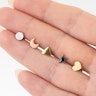 Es pasūtīju mēnesi un pēc tam zvaigzni un sirdi. No tā radās skaists kopums ausij. Mēness un zvaigznes malas ir asas, taču neizsauca man neērtības miega laikā, tāpat kā arī rotas formas bumbiņas aizmugure.