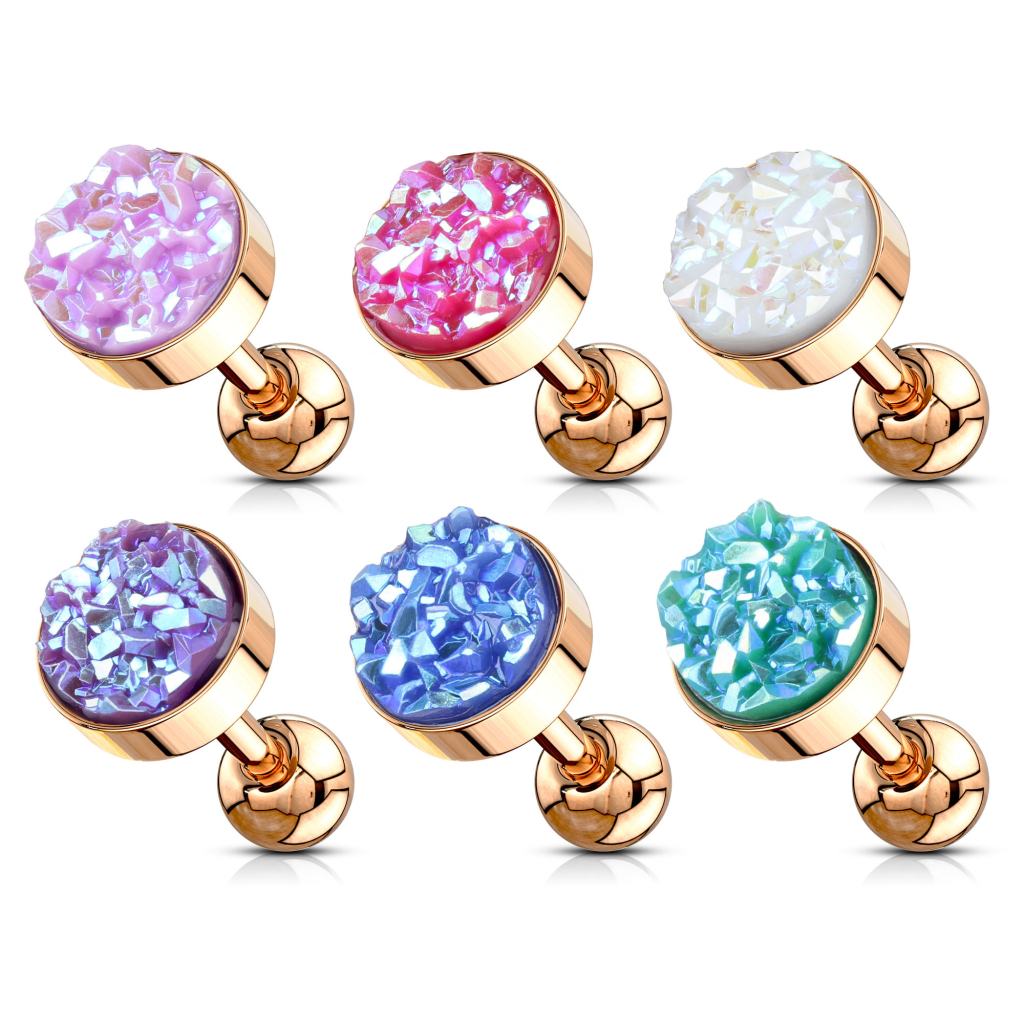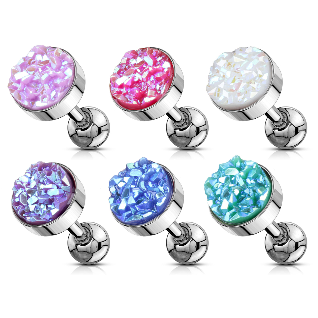 Mēs piedāvājam diskrētu auss pīrsinga rotaslietu, kurai piemīt īpašs šarms. Rotaslieta ir 1/4 collas (6 mm) gara un tās uzgalim ir tādas pašas dimensijas, bet tas, kas noklāj uzgali, padara šo rotu neatkārtojami skaistu.