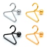 Aiz pakaramā atrodas nagliņa jeb īss stienītis, kas izies cauri jūsu pīrsingam. Iepretī drēbju pakaramajam, aizmugurē atrodas neliels bumbiņveida uzgalis 5/32 collas (4 mm), kuru ir jāieskrūvē stienītī, lai to noslēgtu. Uzskrūvējamais bumbiņveida uzgalis nodrošinās, ka auskars neizkrīt ārā no jūsu pīrsinga, tas tam pieškīrs piemīlīgu izskatu. Auskars ir pieejams dažādās krāsās, bet neiekrāsotā sudraba krāsa ir laikam visvienkāršākā, ar kuru ir iespējams kombinēt. Ja vēlaties, lai jūsu izskats būtu saulaināks, izvēlieties krāsoto modeli, kurš jums patīk visvairāk.