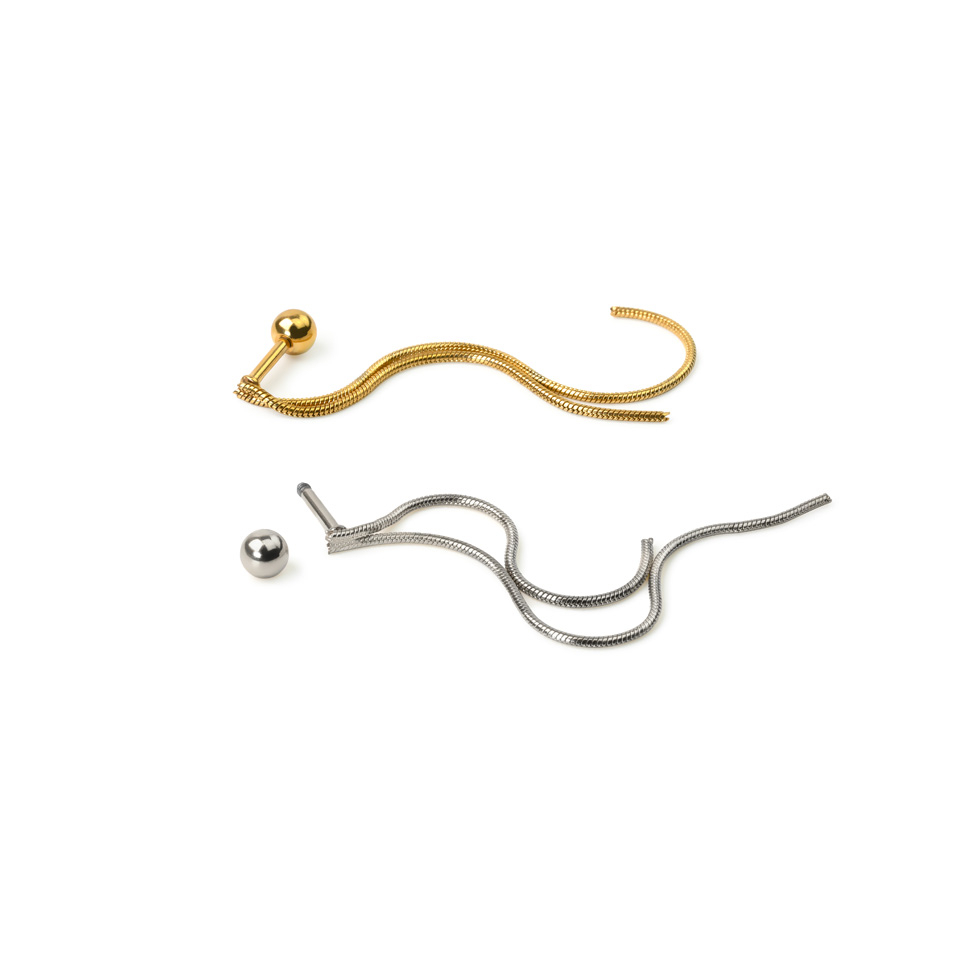 Nosaukums: Auss pīrsinga ar divām nokarenām ķēdītēm