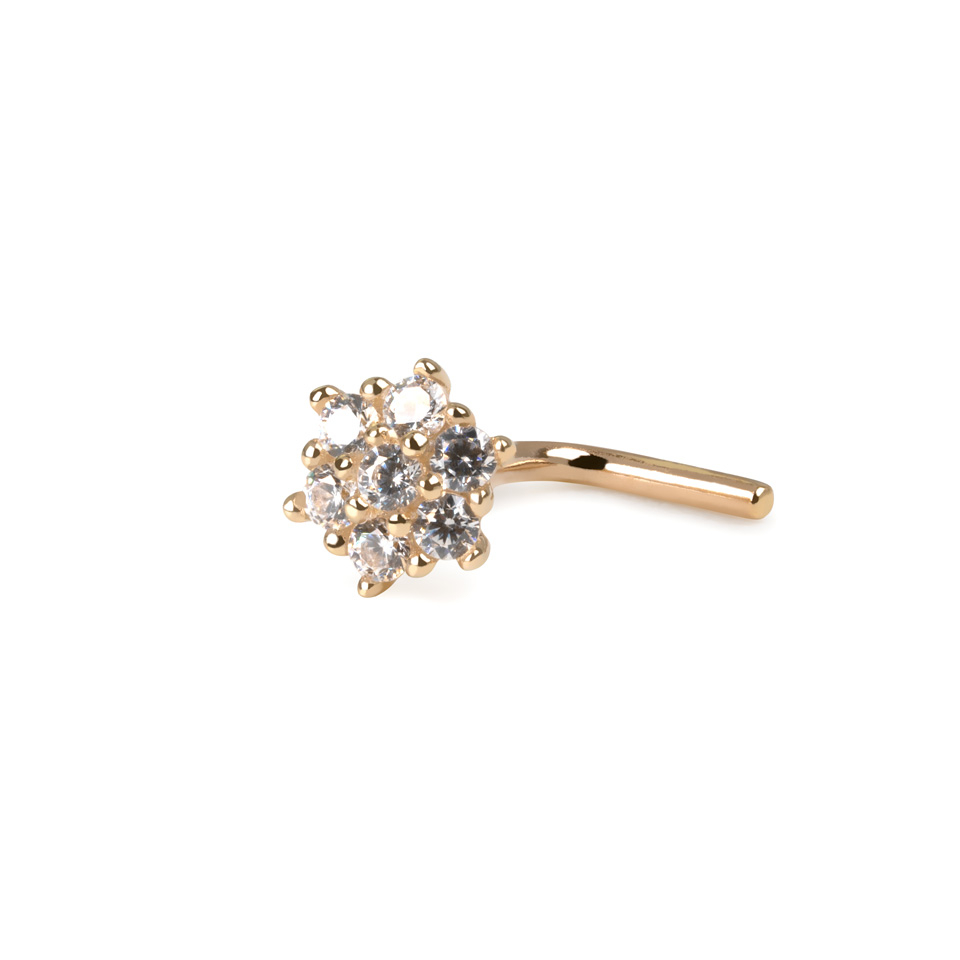 Šī nagliņa ir izgatavota no 14 karātu zelta: pieejams gan baltā, gan dzeltenā zelta modelis. Stienīša vienā galā ir skaists, no maziem mirdzošiem kristāliem veidots ziediņš. Pareizāk sakot, kristāli ir piestiprināti pie struktūras ar nelielu spīļu palīdzību, Stienīša otrs gals, kurš tiek ievietots nāsī, ir ieliekts 90 grādu leņķī - tas palīdz nagliņai stingri turēties vietā.