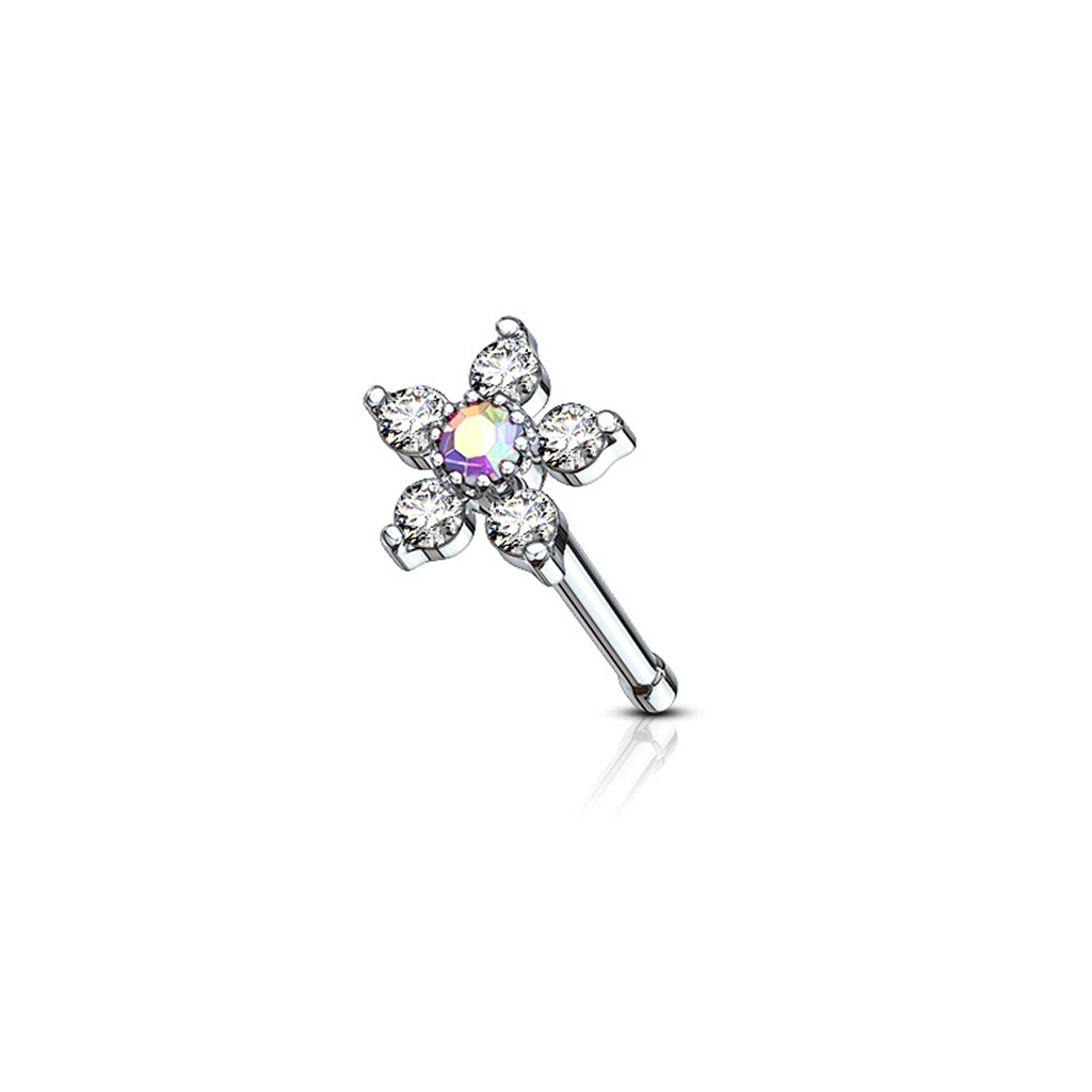 Nosaukums: Deguna nagliņa ar ziedu un pieciem kristāliem