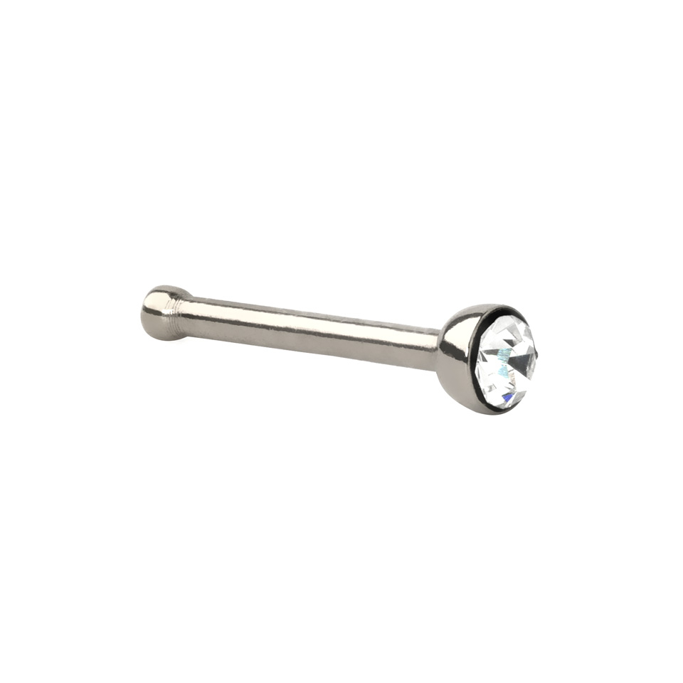Nagliņa ir pieejama ar dažādas krāsas kristāliņiem, kurus Tu vari izvēlēties izvēlnē. Tu vari izmantot šo modeli, ja Tava pīrsinga punkcija tika veikta ar pīrsinga pistoles palīdzību, jo tā stieņa biezums ir 0.8 mm (20g), bet tā garums ir aptuveni 7 mm (1/4 collas). Ja Tu meklē kaut ko citādāku, nekā ierasto deguna rotu, tad šī nagliņa ir tieši tas, ko Tu vēlies!