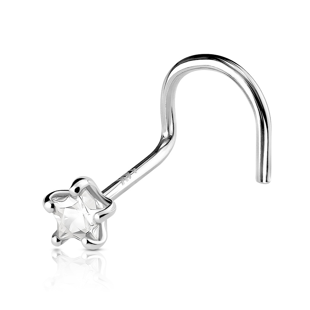 Nosaukums: Deguna pīrsinga skrūve no 14 karātu zelta ar zvaigznes formas kristālu