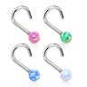 Šī ir noderīga deguna skrūve r skaistu opāla akmentiņu, kas noteikti atstās labu iespaidu. Šis mazais opāla akmens 1/16 collas (2 mm) ir bumbiņveida uzgalis, pieejams četrās krāsās: rozā, zaļš, zils un balts. Katrs opāls ir unikāls, nav divu vienlīdzīgu akmeņu, jo tie ir izveidojušies dabīgā ceļā. Tic, ka opāli veicina iedvesmu, iekšējo mieru un mīlestību. Ja tā skaistums jums nav pietiekams, ir daudzi citi iemesli, lai iegādātos šo deguna pīrsinga skrūvi.