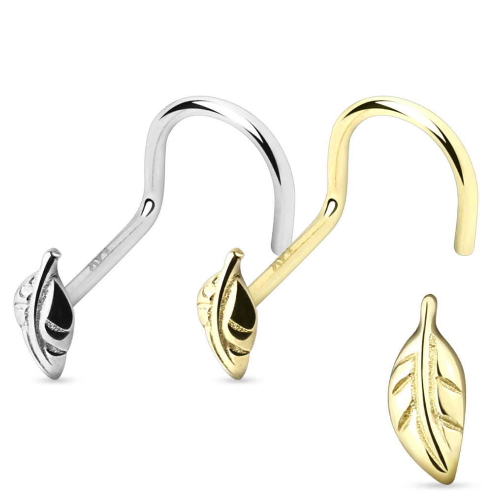 Nosaukums: Deguna skrūve no 14 karātu zelta ar koka lapu