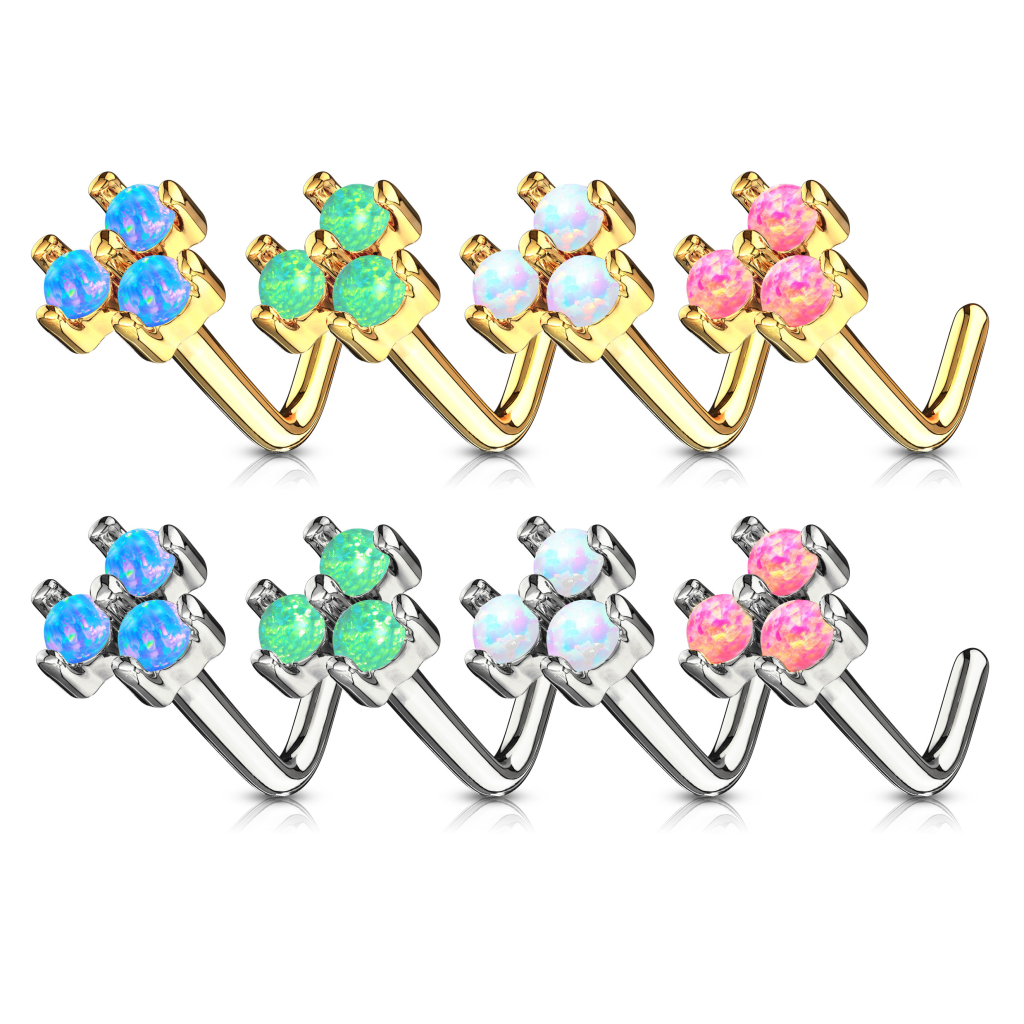 Nosaukums: Deguna pīrsings L formas no 14 karātu zelta ar trīs opāliem