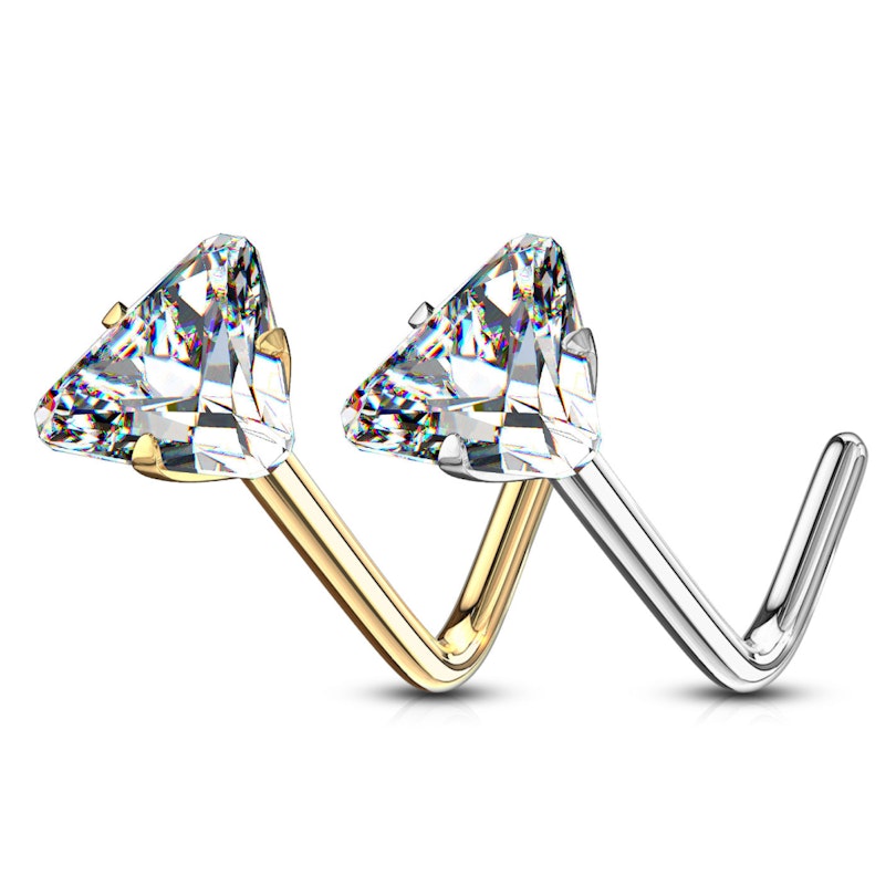 Nosaukums: Deguna L-formas nagliņa no 14 karātu zelta ar trīsstūrainu kristālu