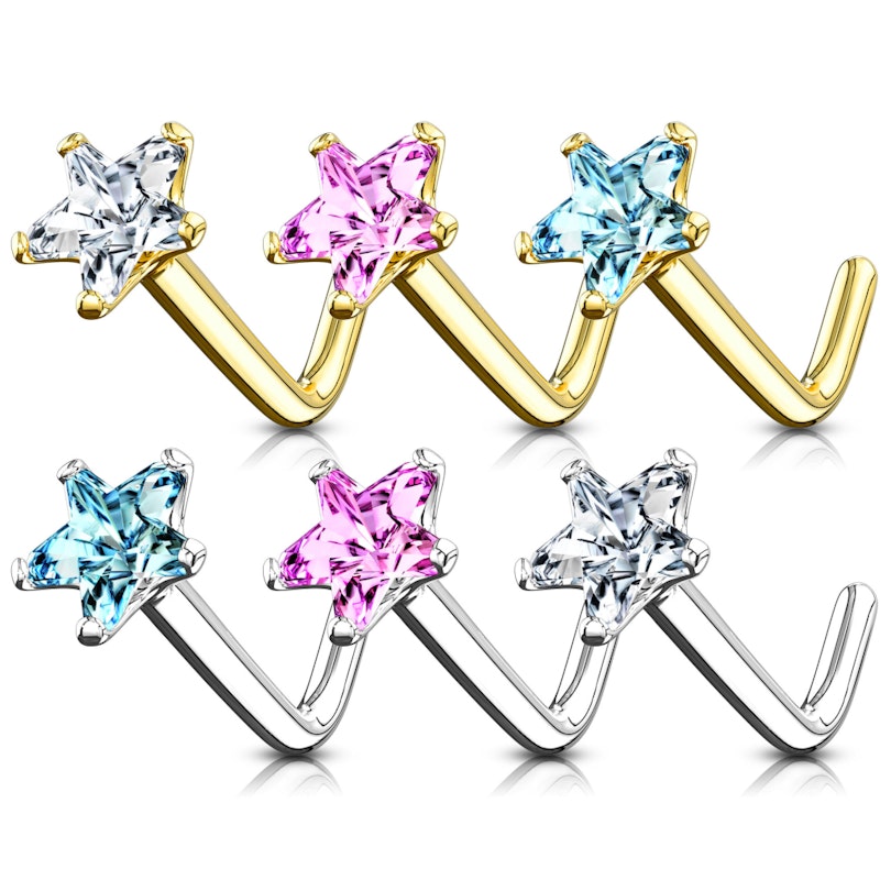 Mirdziet tikpat spoži kā zvaigznes ar šo brīnišķīgo un sievišķīgo deguna nagliņu, rotāta ar zvaigznes formas kristālu. Kristālam ir briljanta slīpējums dažādos leņķos, tādēļ gaismai, atstarojoties no tā, kristāls mirdz neticami spoži. Kristālam ir tradicionālais briljantu slīpējums, kādu izmanto rotaslietu pasaulē. Turklāt jūs varat izvēlēties starp trīs krāsām: caurspīdīgais akmens ir lielisks klasiskam izskatam, bet rozā akmens izcels jūsu sievišķīgo pusi, un tirkīza modelis piešķirs jūsu apģērbam svaigu un ekskluzīvu izskatu.
