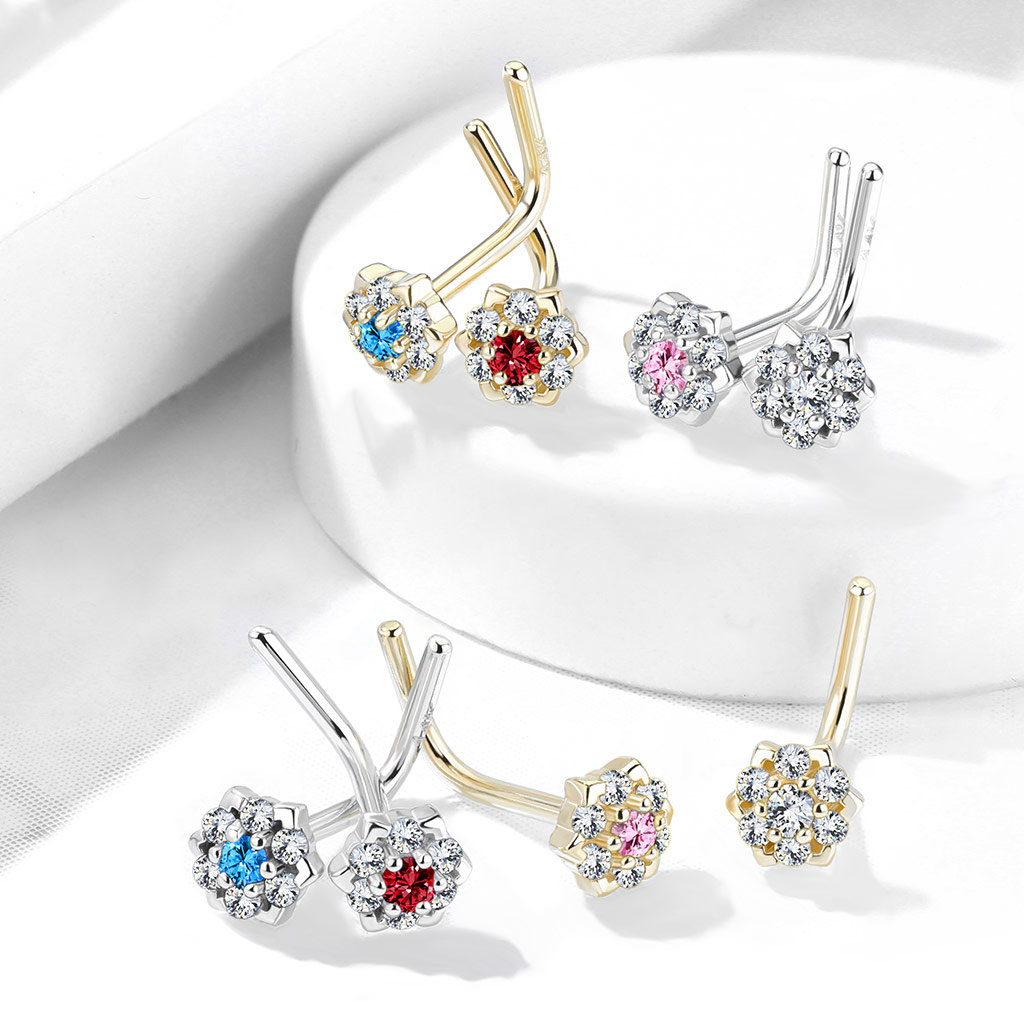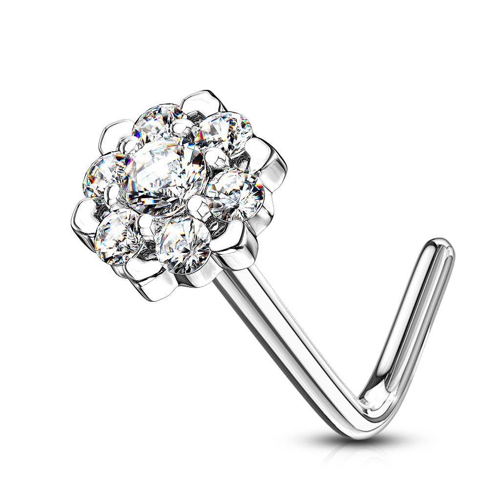 Nosaukums: Deguna L-formas nagliņa no 14 karātu zelta ar kristāla lotusa ziedu