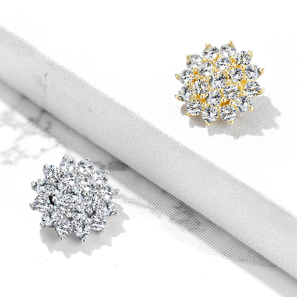 Nosaukums: Dermal pīrsings no 14 karātu zelta ar kristāliem pārklāta zieda dizainu