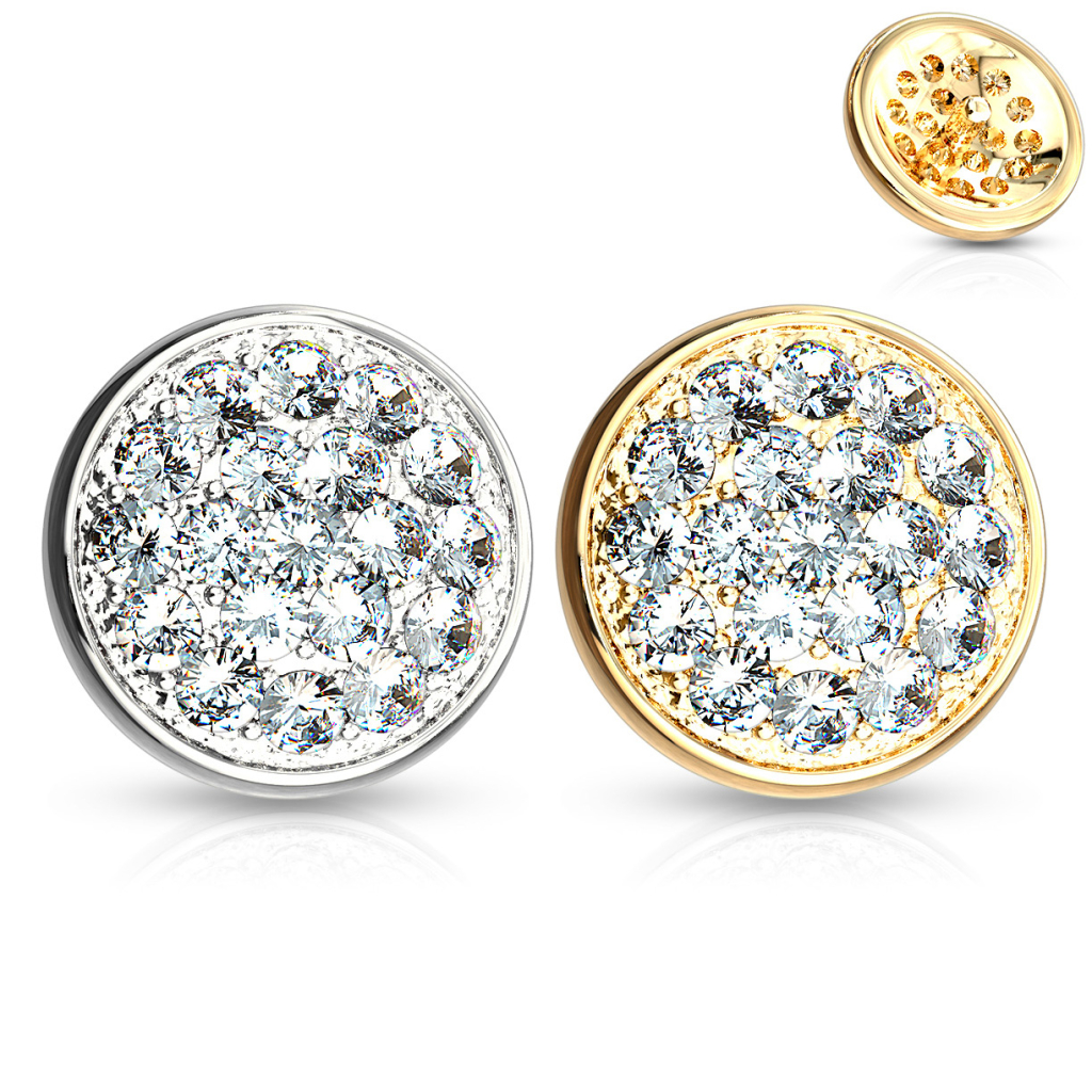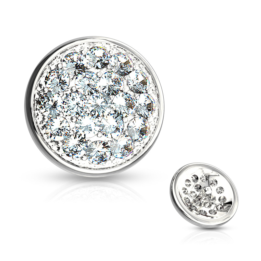 Akmeņi, akmeņi un vēlreiz akmeņi: kā redzams attēlā, šī rotaslieta ir izgreznota ar akmentiņu kaudzi. Nav tā, ka mēs esam iemīlējušies Miss Cirkonijā, bet šajā rotaslietā ir inkrustēti veseli 19! Ja nevēlaties tik daudz akmentiņus savā rotaslietā, tad jums ir akmentiņu problēma. Lai gan varētu likties nedaudz pārmērīgi, inkrustēt 19 kristāliņus nelielā dermal uzgalī, kura lielums nepārsniedz 1/4 collas (6 mm), tas liek rotai izskatīties satriecoši, nepadarot to pārlieku smagu.