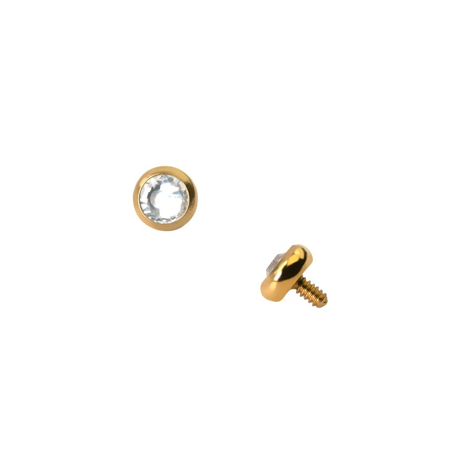 Šis dermal anchor uzgalis, sastāv no neliela, plakana diska, kura rāmī ir iestatīts kristāldzidrs cirkonija akmens.