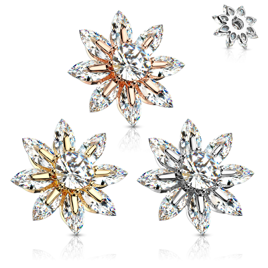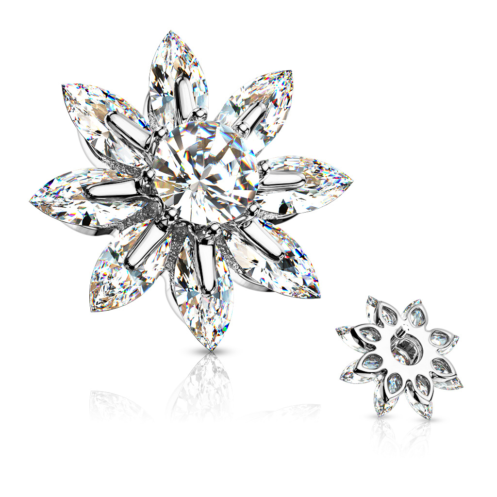 Nosaukums: Dermal uzgalis zieda formā ar ziedlapiņām un lielu kristālu centrā
