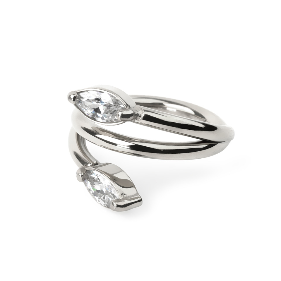Divkārša efekta segmentēts pīrsingu gredzens ar marķīzes slīpējuma akmentiņiem