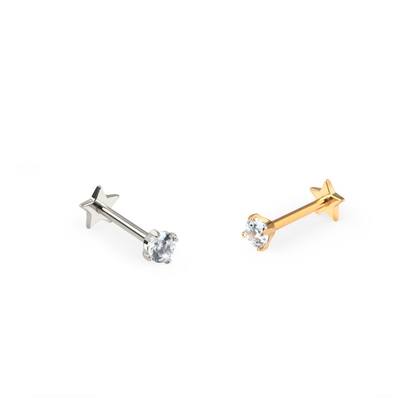 Nosaukums: Divpusēja titāna labrete bez vītnes ar plakanu zvaigznes formas pamatni un akmentiņu
