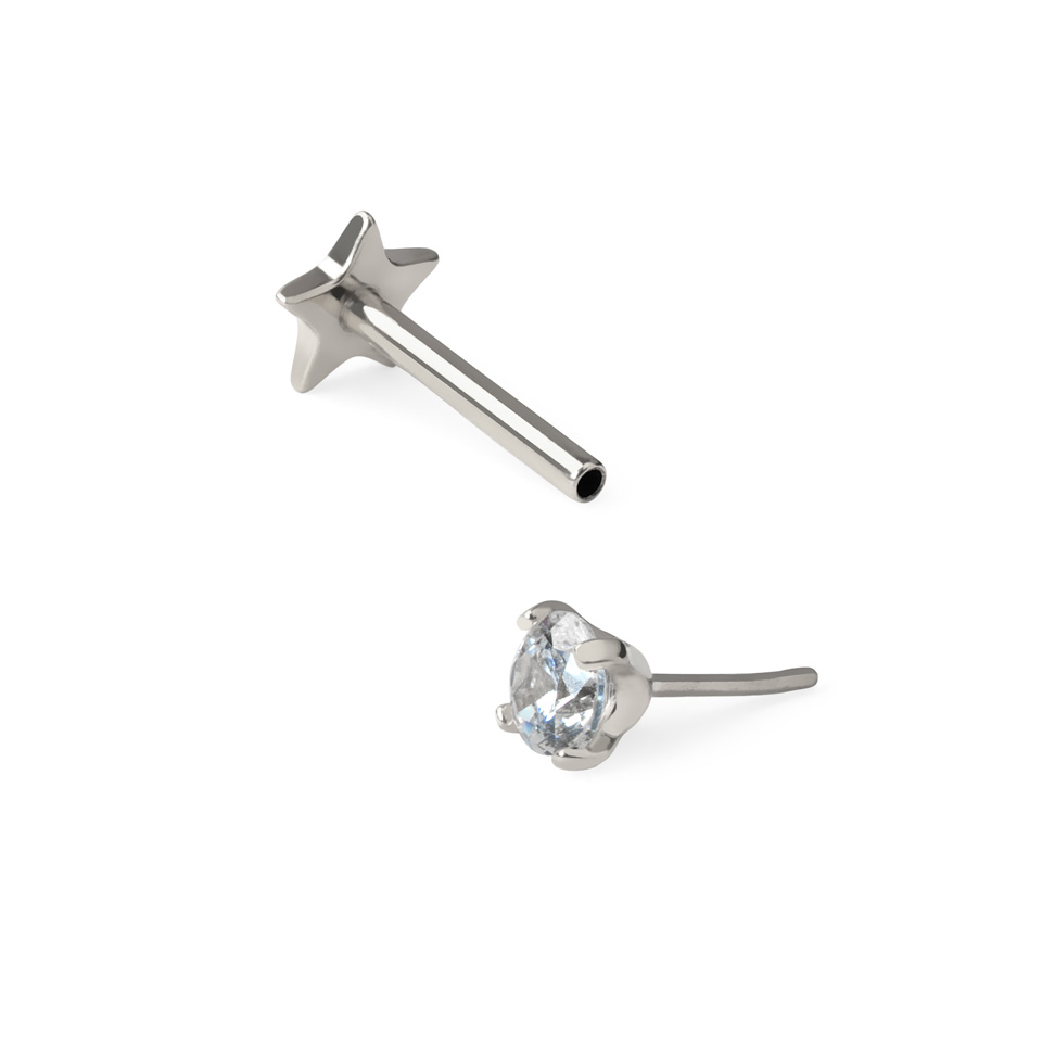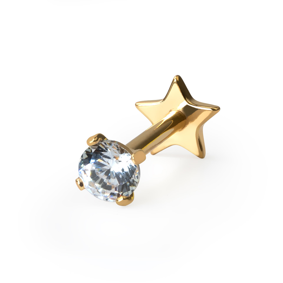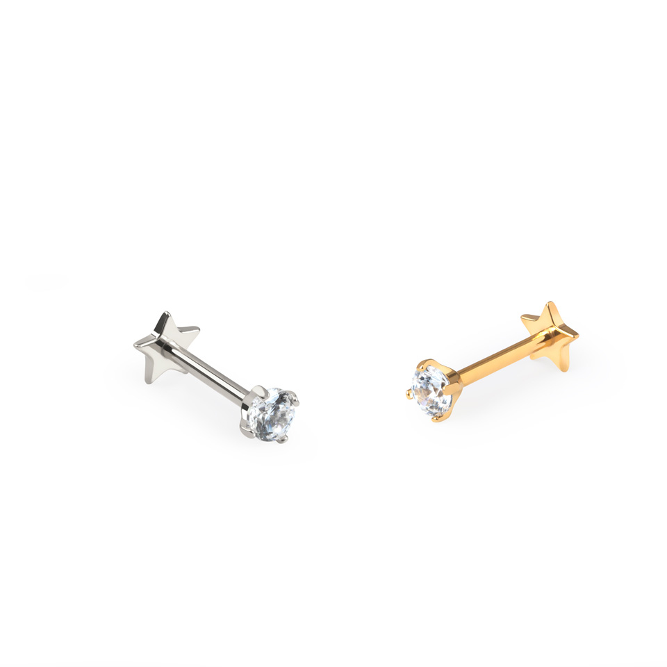 Nosaukums: Divpusēja titāna labrete bez vītnes ar plakanu zvaigznes formas pamatni un akmentiņu