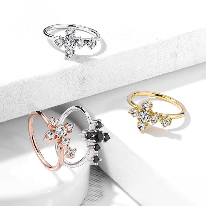 Pīrsinga gredzens ar kristāliem formētu krustu