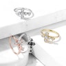 Rotaslieta ir izgatavota no misiņa, tās biezums ir 0.8mm un diamterā ir 8mm. Tas ir pārklāts ar platīnu, ja izvēlēsieties sudraba krāsas gredzenu, bet ar 14 karātu zeltu, ja izvēlēsieties kādu no diviem pieejamajiem zelta modeļiem. Kā jau varat redzēt, rotaslietas priekšpusē ir stilīgs krusts. Krustu rotā seši mazi kristāli, kurus variet iegūst krāsā pēc Jūsu izvēles. Pieejamās izvēles iespējas ir dzidri vai melni kristāli, abi vienlīdz skaisti.