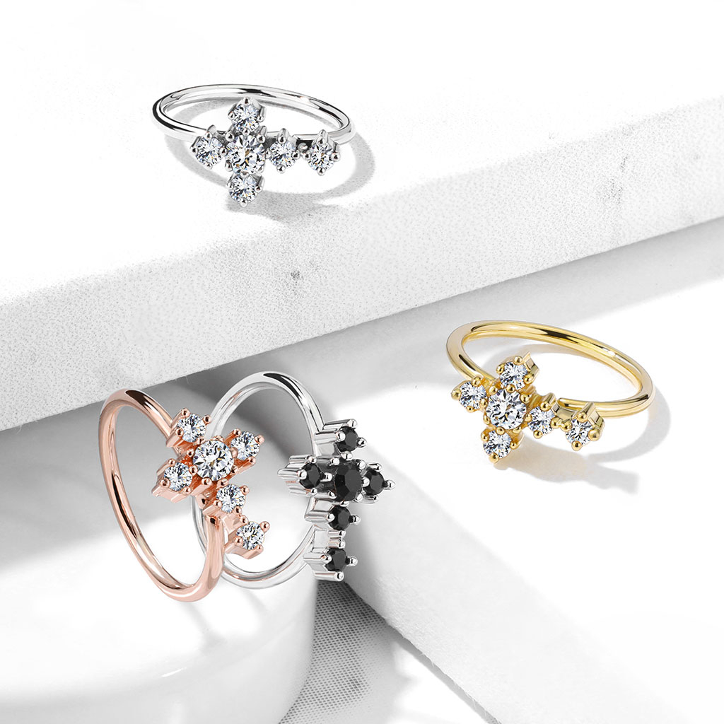 Pīrsinga gredzens ar kristāliem formētu krustu