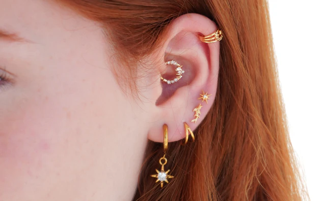 Huggies, nagliņas un kaffi, kas ļauj viegli izveidot savu ear stack