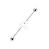 Šis skaistais un unikālais stienītis ir izgatavots no super noturīga materiāla - ķirurģiskā tērauda, tas ļauj jūsu rotaslietām palikt labā stāvoklī uz ļoti ilgu laiku. Šis stienītis ir dekorēts ar tŗīs, piecu staru zvaigznēm, piecos dažādos izmēros. Stienīša kopējais garums ir 1-1/2 collas (38 mm) un tas ir dizainēts nēsāšanai caur diviem auss pīrsinga caurumiem, zināms kā industriālais pīrsings.