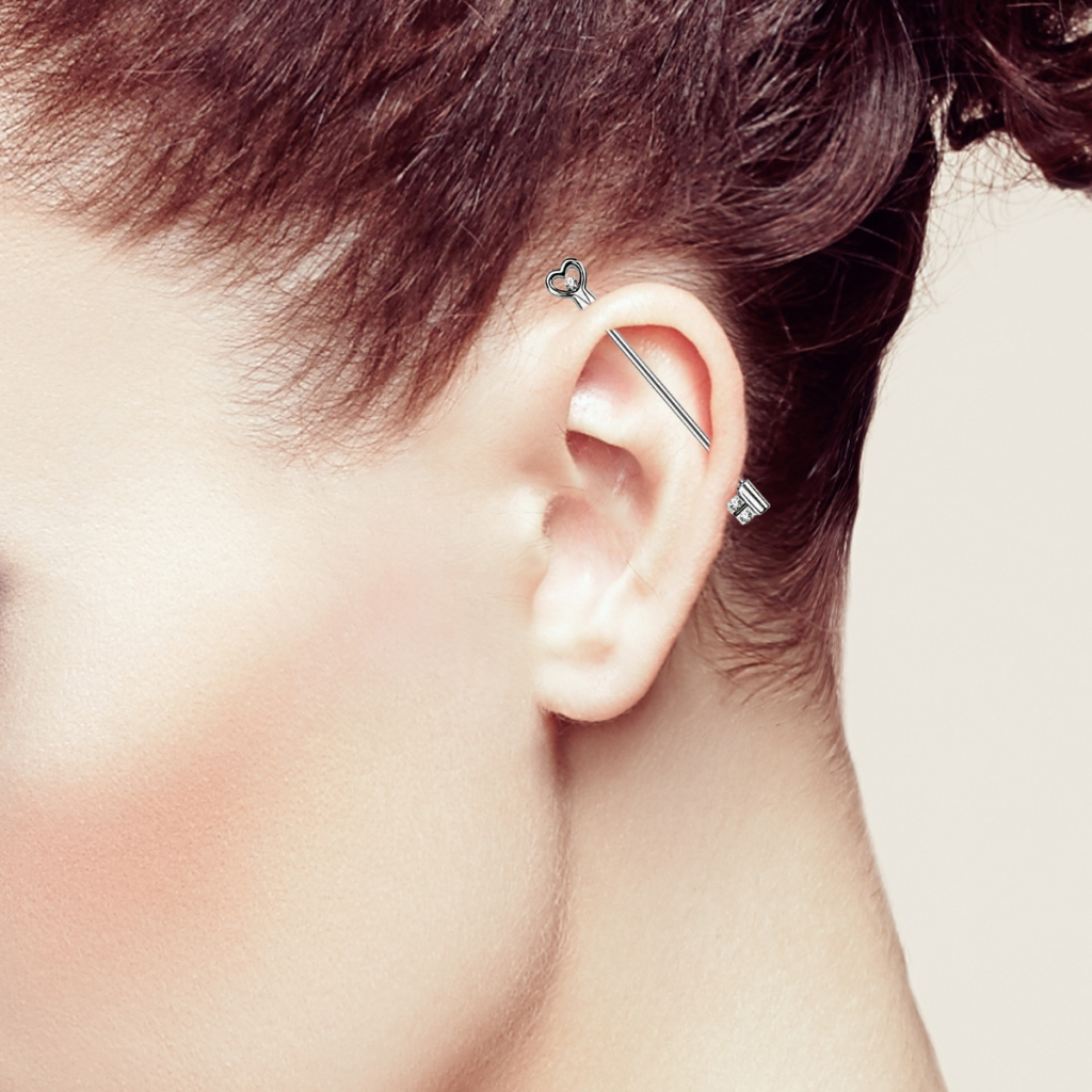 Nosaukums: Industriālais pīrsings atslēgas formā