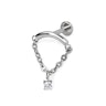 Šī elegantā titāna labrete sastāv no izliekta stienīša un ķēdītes, kas savieno abus labretes galus un veido cilpu tās apakšdaļā. Pie ķēdītes nelielā cilpā ir piekārts ietvarā iestiprināts cirkonija piekariņš. Tā kā akmens piekariņš nav fiksēts ķēdītes vidū, tas vienmēr karāsies zemākajā ķēdes punktā, kas ļauj Tev dažādot savu izskatu, atkarībā no tā, kā Tu izvēlēsies ievietot rotu savā ausī. Rota lieliski izskatīsies auss ļipiņas vai helix pīrsingos, turklāt to var nēsāt gan vienu, gan arī kā daļu no rotu kombinācijas.