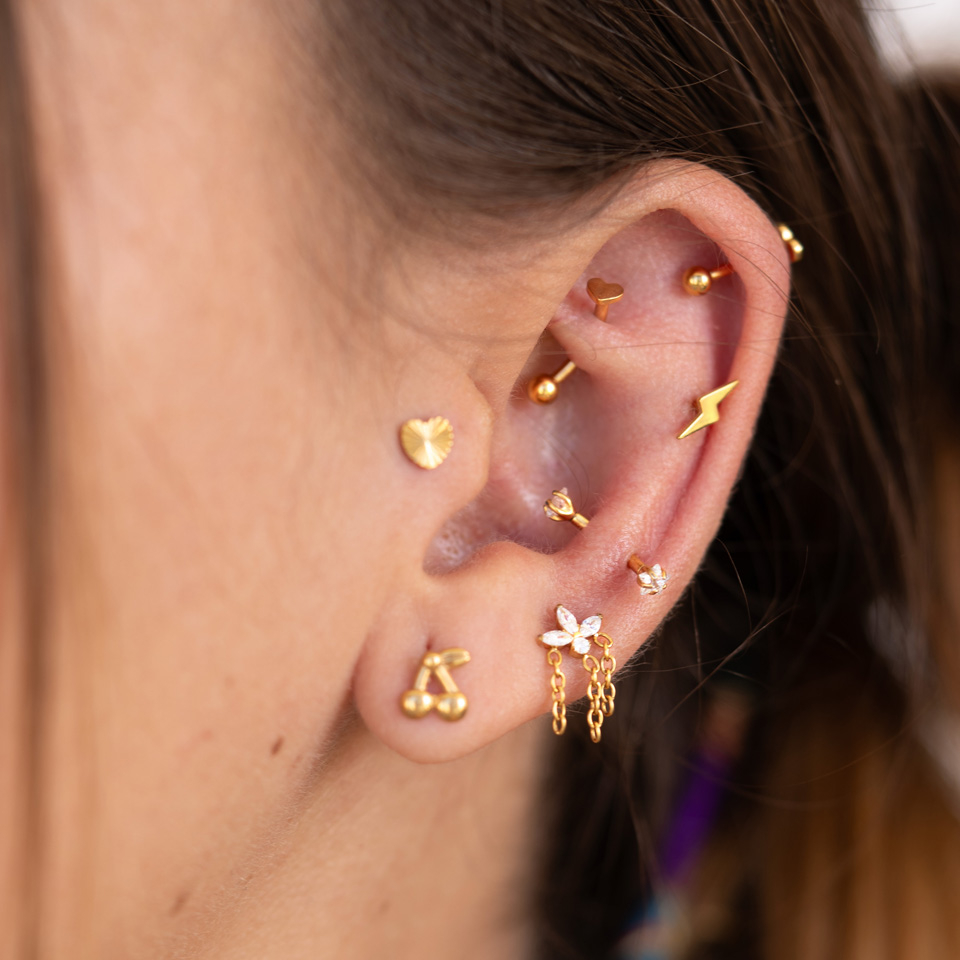 Novietojums: Vertical labret, Snug, Uzacs, Daith, Bridge, Anti-tragus