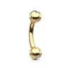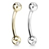 Apburošs un sievišķīgs izliektais stienītis 14 karātu zeltā ar mirgojošu akmeni, iestatītu abos bumbiņveida uzgaļos. Šis stienītis ir ideāli piemērots, ja jūs vēlaties klasisku un diskrētu izskatu, ar izsmalcinātu eleganci. Par spīti tā vienkāršajam dizainam, tas apburs ikvienu, kas to ieraudzīs. Tam ir smalks dizains, kas nekad neizies no modes. Tas ir pieejams divos dažādos izmēros, kuru jūs varat izvēlēties, pirms pievienojat preci savam iepirkšanās grozam. Tas ir jums ideāli piemērots, ja jūs vēlaties labāko no labākā, saviem iemīļotajiem vai pašam sev. :-)