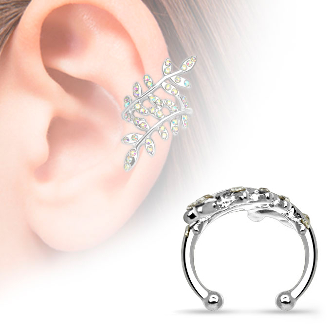 Šis auss kaffs var tikt izmantots dažādās vietās, tā kā tas ir tikai jāklipsē uz auss loka. To ir vieglu uzlikt un tas nerada sāpes vai diskomfortu. Turklāt, nav nepieciešamības pēc īsta pīrsinga cauruma. Tieši tā, šis auss kaffs ir noderīgs cilvēkiem, kuriem nav auss pīrsinga, vai arī domā to caurdurt, bet vispirms vēlas to izmēģināt. Šī elegantā un detalizētā rotaslieta ir pieejama trīs dažādās krāsās. Izvēlieties stap sudraba vai zelta, abi ir pārklāti ar baltiem kristāliņiem. Bet, ja jūs meklējat delikātu modeli, jūs varat iegūt sudraba modeli ar ziemeļblāzmas efekta akmentiņiem. Šādi akmeņi atstaro varavīksnes krāsas. Kad auss kaffs ir kustībā, tas rada unikālu effektu.