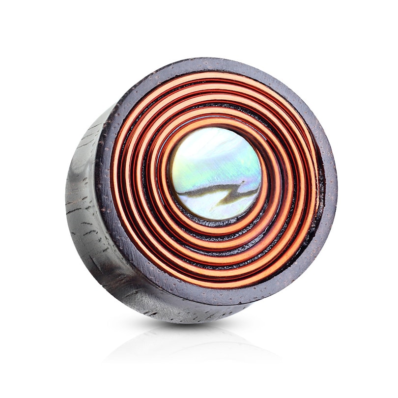Nosaukums: Plugs no koka ar perlamutru un vara stiepli