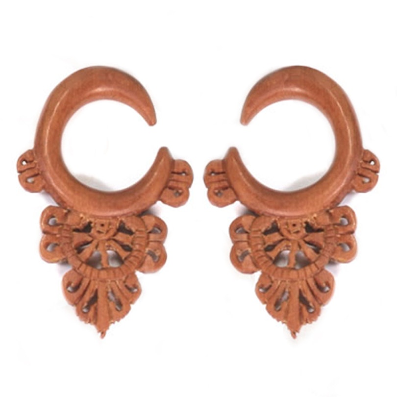 Šie auskari ir izgatavoti no sabala plamas (Sabal Palmetto), tumši brūna koka ar sarkaniem toņiem. To bieži izmanto pīrsinga rotaslietu izgatavošanā, jo tā koka augšanas gredzeni nav saskatāmi, un tam ir vienveidīga virsmas krāsa.
