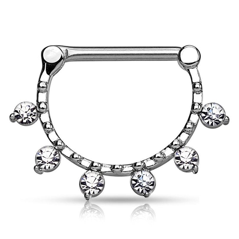 Šie krūtsgala klikeri ir izgatavoti no ķirurģiskā tērauda. Loks, kas atrodas zem jūsu krūtsgala, ir izgatavots no misiņa, pārklātu ar burvīgu krāsas slāni.