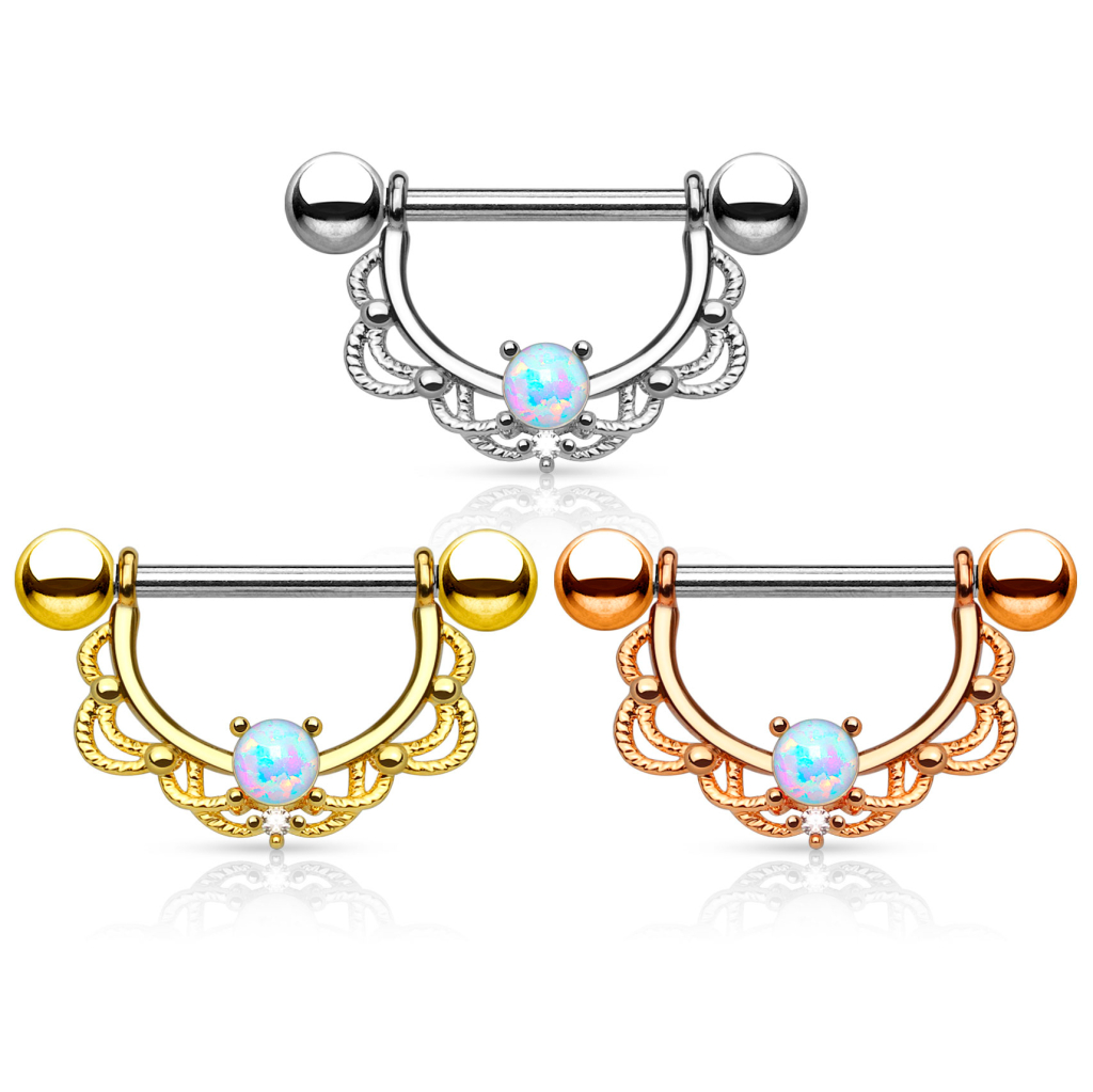 Krūtsgala pīrsings ar filigrānu dizainu un opāla akmeni