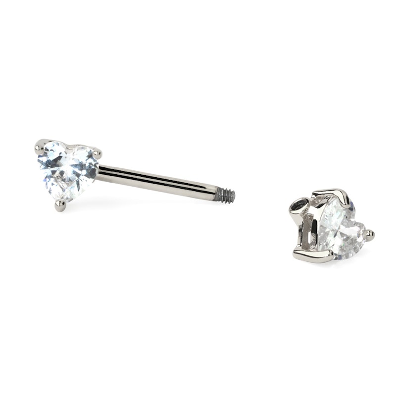 Krūtsgala stienītis ar sirds formas cirkonija kristāliem