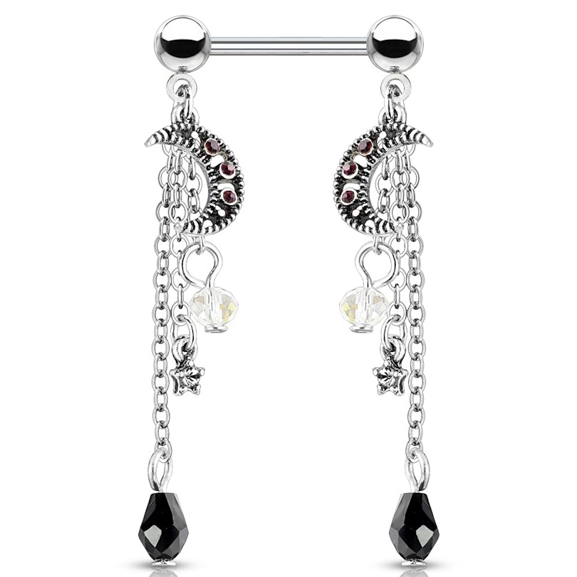 Augšā novietotajā produkta attēlā, ir redzams krūtsgala stienītis ar galaktikas skaistumu. Tas ietver divus mēnešus, zvaigznes, un nelielus akmentiņus, kuri atgādina meteorītus. Visas dekorācijas karājas no brīvi nokarenām ķēdēm, kuras ir, savukārt pievienotas pie stienīša bumbiņveida uzgaļa. Stienis ir 9/16 collas garš un izgatavots no ķirurģiskā tērauda.